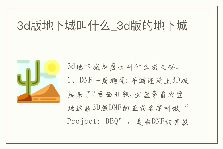 3d地下城與勇士叫什么龍之谷。1、DNF一周趣聞:手游還沒上3D版就來了?畫面升級,女藍拳首次登場這款3D版DNF的正式名字叫做“Project:BBQ”,是由DNF的開發(fā)公司Neople制作,因此與其他打著“DNF”旗號蹭