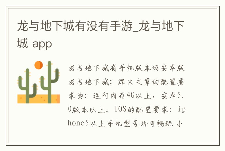 答:龍與地下城手游將于明年推出,具體什么時候暫時未知 。