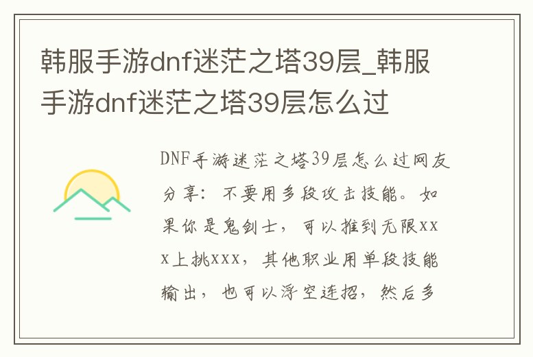 韓服手游dnf迷茫之塔39層_韓服手游dnf迷茫之塔39層怎么過