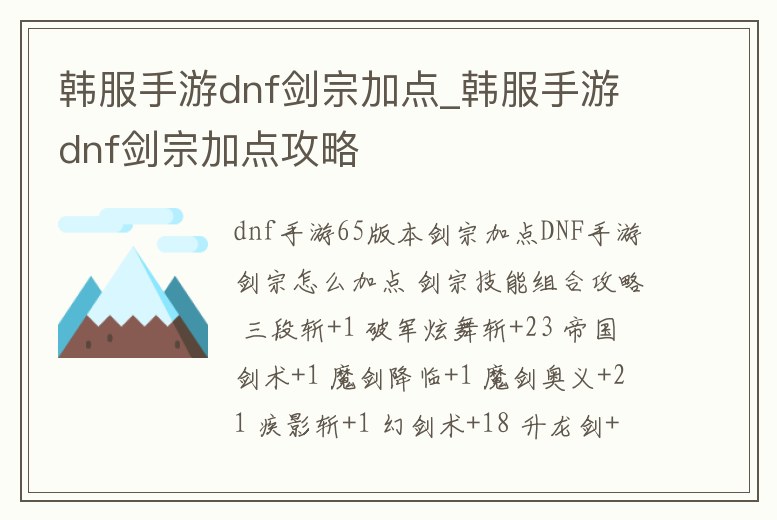 韓服手游dnf劍宗加點_韓服手游dnf劍宗加點攻略