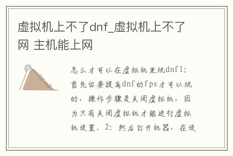 虛擬機上不了dnf_虛擬機上不了網 主機能上網