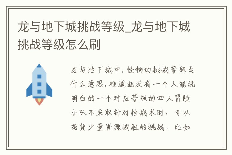 龍與地下城挑戰等級_龍與地下城挑戰等級怎么刷