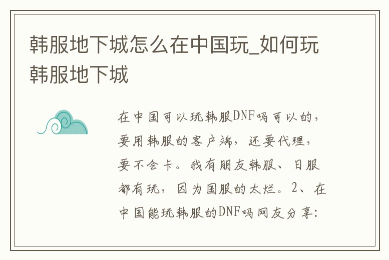 韓服地下城怎么在中國玩_如何玩韓服地下城