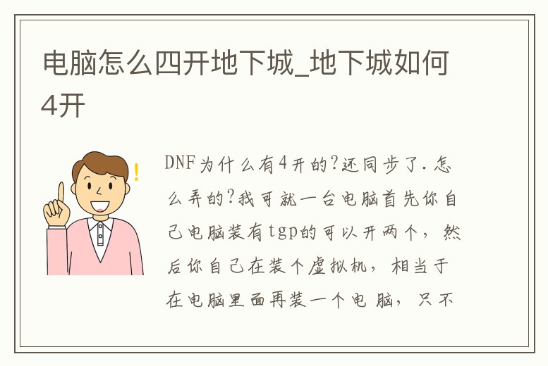 DNF為什么有4開的?還同步了.怎么弄的?我可就一臺電腦