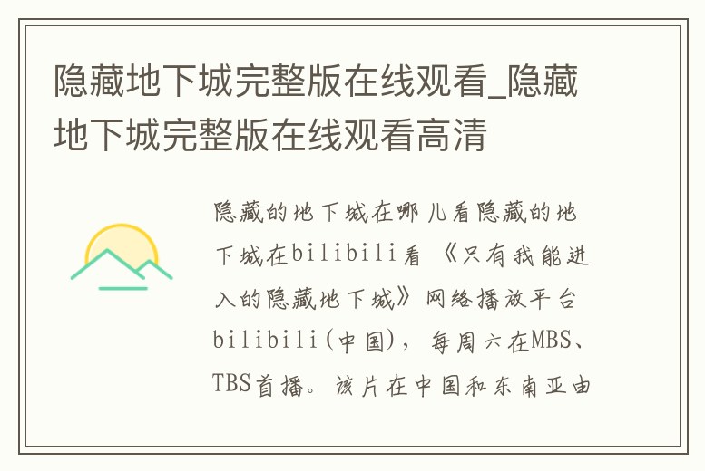 隱藏的地下城在bilibili看 《只有我能進(jìn)入的隱藏地下城》網(wǎng)絡(luò)播放平臺(tái)bilibili(中國(guó)),每周六在MBS、TBS首播。該片在中國(guó)和東南亞由OTT平臺(tái)bilibili提供視頻點(diǎn)播服務(wù)。電視動(dòng)畫片《只有我能進(jìn)入的隱藏地下城》改編自瀬戸メグル著。