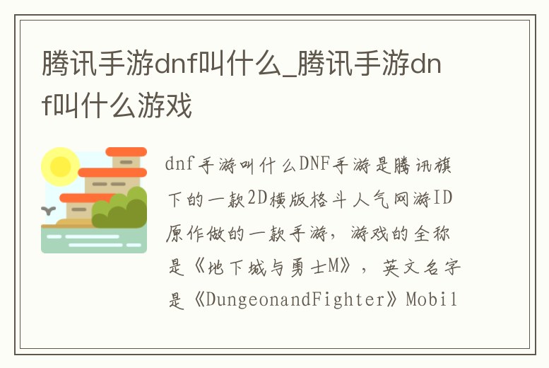騰訊手游dnf叫什么_騰訊手游dnf叫什么游戲