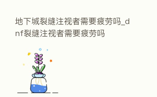 地下城裂縫注視者需要疲勞嗎_dnf裂縫注視者需要疲勞嗎
