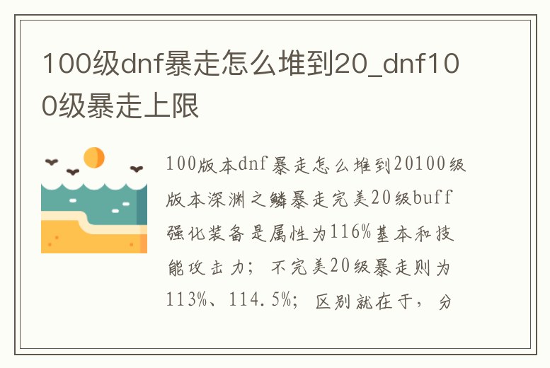 100級dnf暴走怎么堆到20_dnf100級暴走上限