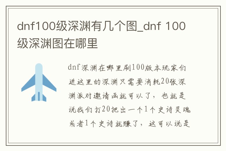dnf100級深淵有幾個圖_dnf 100級深淵圖在哪里