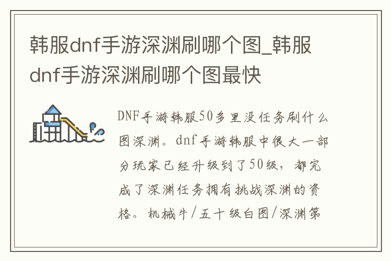 韓服dnf手游深淵刷哪個圖_韓服dnf手游深淵刷哪個圖最快