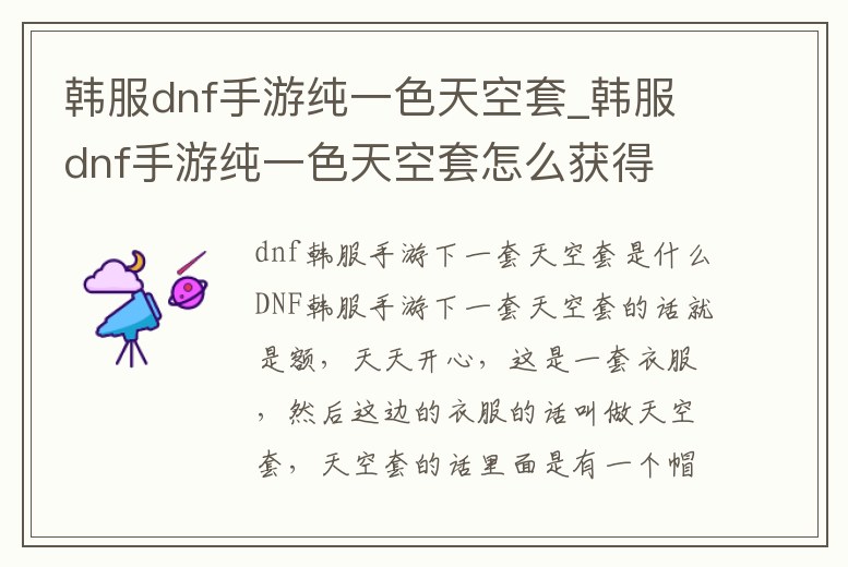 - 韓服dnf手游純一色天空套_韓服dnf手游純一色天空套怎么獲得