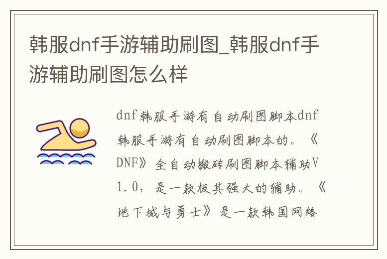 韓服dnf手游輔助刷圖_韓服dnf手游輔助刷圖怎么樣