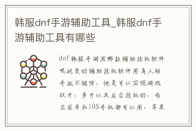 - 韓服dnf手游輔助工具_韓服dnf手游輔助工具有哪些