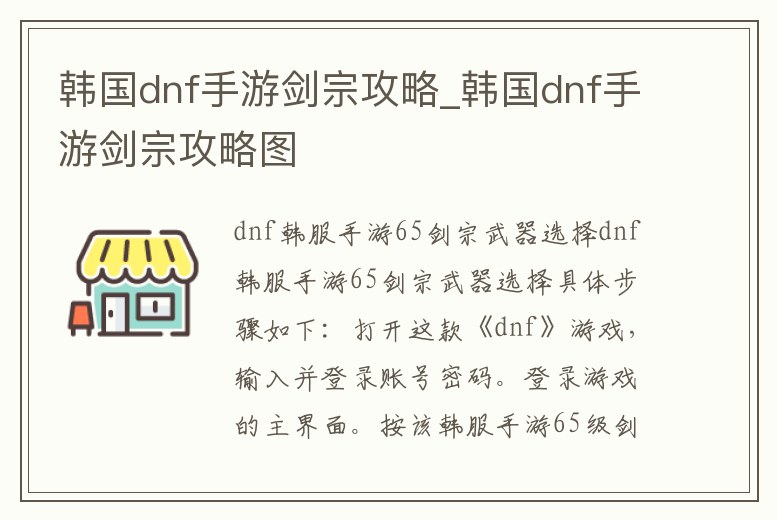 韓國dnf手游劍宗攻略_韓國dnf手游劍宗攻略圖