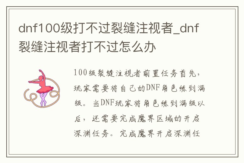dnf100級打不過裂縫注視者_dnf裂縫注視者打不過怎么辦