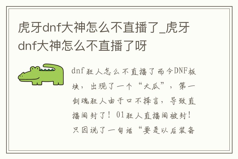 虎牙dnf大神怎么不直播了_虎牙dnf大神怎么不直播了呀