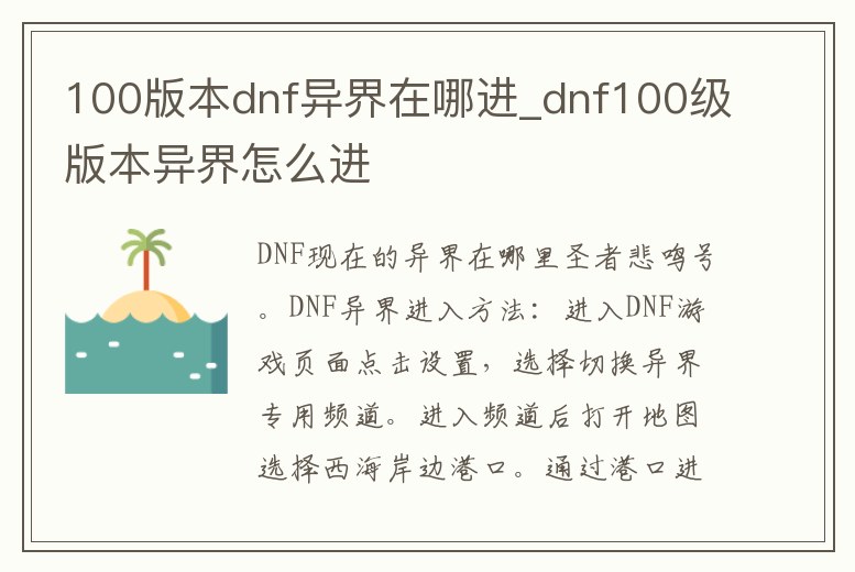100版本dnf異界在哪進_dnf100級版本異界怎么進