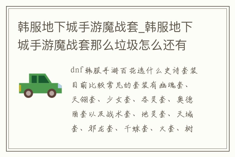 韓服地下城手游魔戰套_韓服地下城手游魔戰套那么垃圾怎么還有人推薦