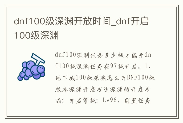 - dnf100級深淵開放時間_dnf開啟100級深淵