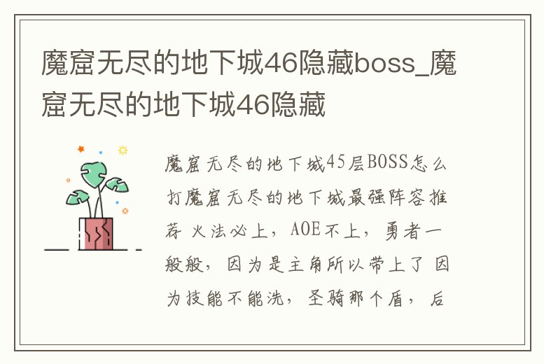 - 魔窟無(wú)盡的地下城46隱藏boss_魔窟無(wú)盡的地下城46隱藏