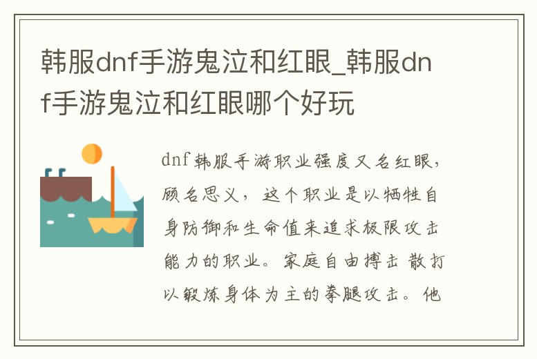 韓服dnf手游鬼泣和紅眼_韓服dnf手游鬼泣和紅眼哪個好玩