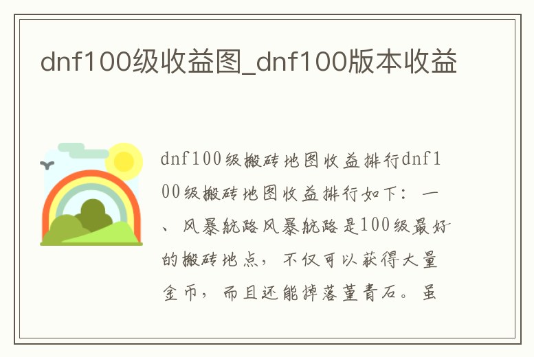 dnf100級搬磚地圖收益排行dnf100級搬磚地圖收益排行如下:一、風(fēng)暴航路風(fēng)暴航路是100級最好的搬磚地點,不僅可以獲得大量金幣,而且還能掉落堇青石。雖然現(xiàn)在堇青石價格下跌了,但是將其出售給黑市的NPC南瓜球,仍能獲得大量收益。二、周常本洞察之眼。1、《dnf》100級搬磚地圖收益排行是什