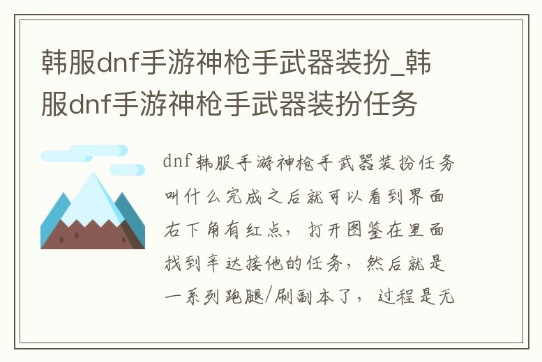 韓服dnf手游神槍手武器裝扮_韓服dnf手游神槍手武器裝扮任務