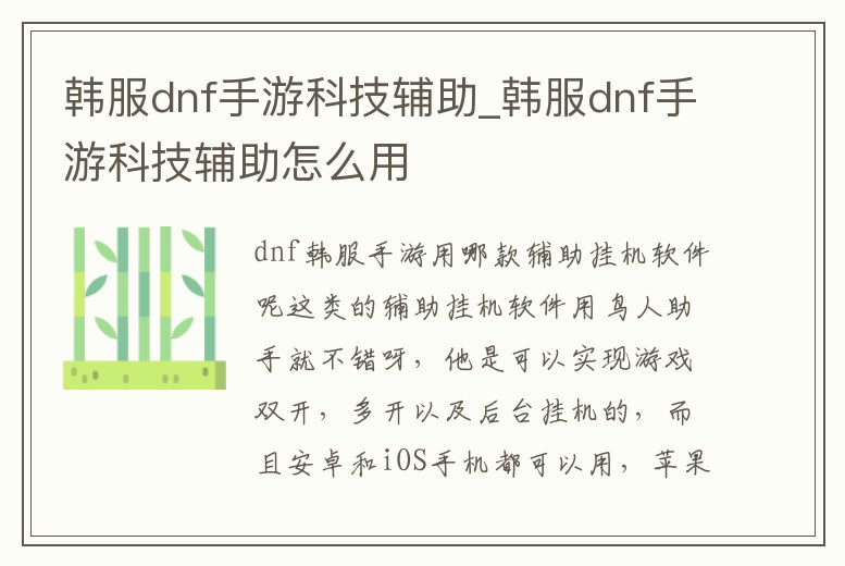 韓服dnf手游科技輔助_韓服dnf手游科技輔助怎么用
