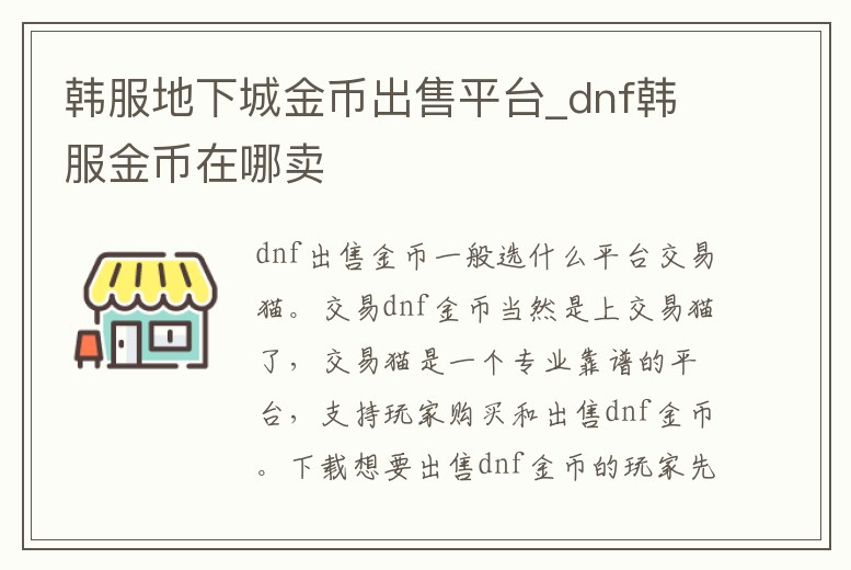 - 韓服地下城金幣出售平臺(tái)_dnf韓服金幣在哪賣