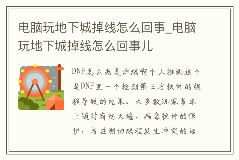 電腦玩地下城掉線怎么回事_電腦玩地下城掉線怎么回事兒