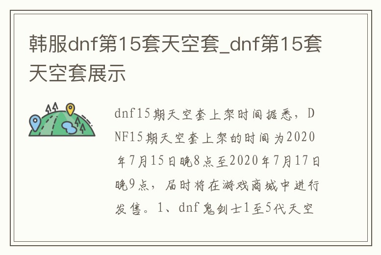 據(jù)悉,DNF15期天空套上架的時(shí)間為2020年7月15日晚8點(diǎn)至2020年7月17日晚9點(diǎn),屆時(shí)將在游戲商城中進(jìn)行發(fā)售。