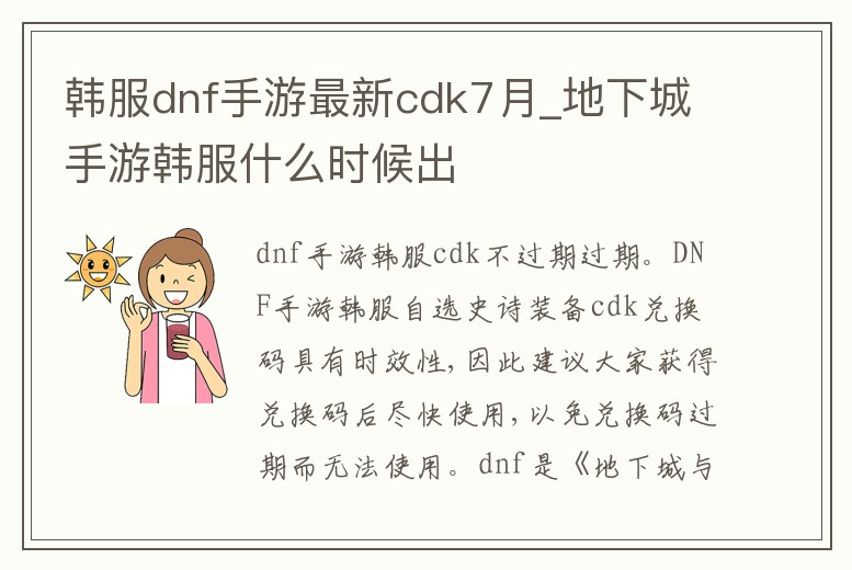 韓服dnf手游最新cdk7月_地下城手游韓服什么時候出