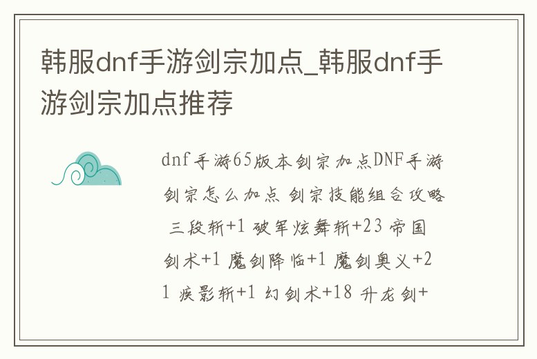 韓服dnf手游劍宗加點_韓服dnf手游劍宗加點推薦