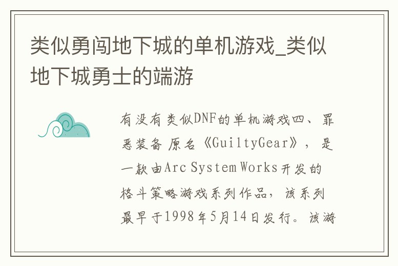 類似勇闖地下城的單機游戲_類似地下城勇士的端游