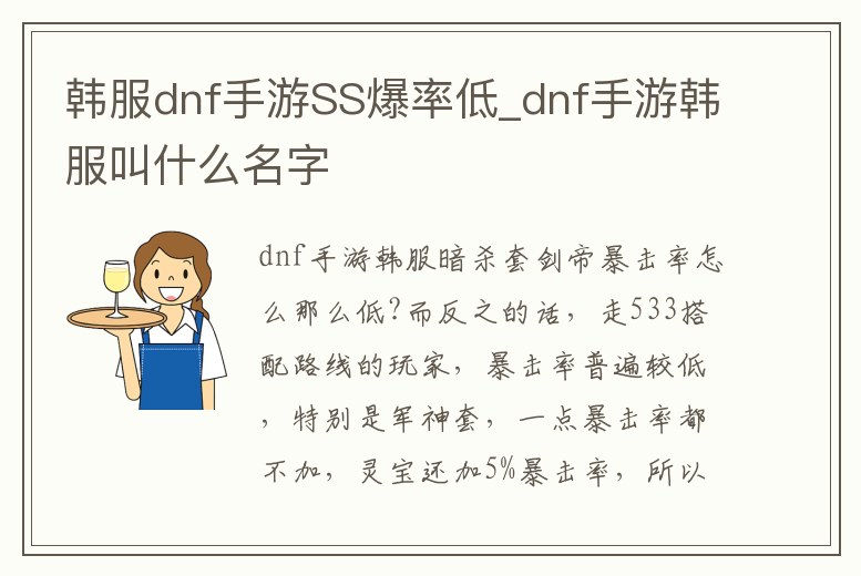 dnf手游韓服暗殺套劍帝暴擊率怎么那么低