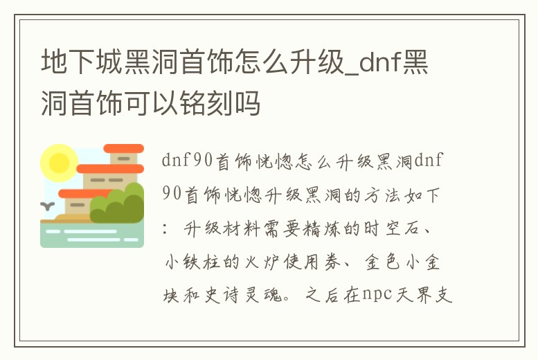地下城黑洞首飾怎么升級_dnf黑洞首飾可以銘刻嗎