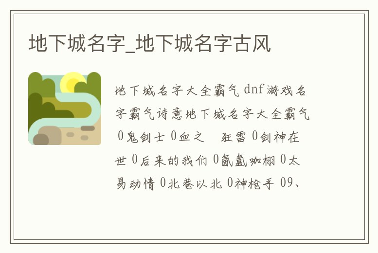 地下城名字大全霸氣 dnf游戲名字霸氣詩意