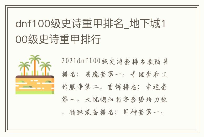 dnf100級史詩重甲排名_地下城100級史詩重甲排行