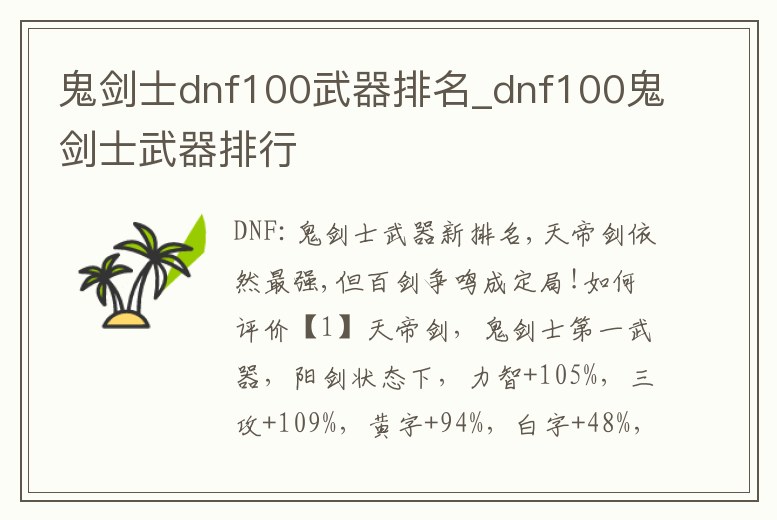鬼劍士dnf100武器排名_dnf100鬼劍士武器排行