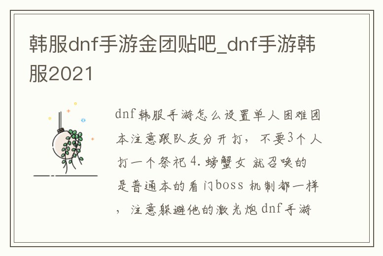 - 韓服dnf手游金團(tuán)貼吧_dnf手游韓服2021