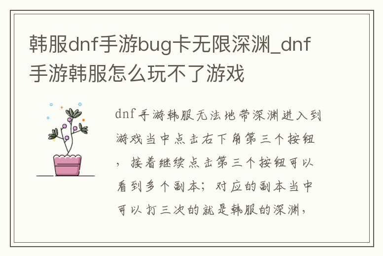 韓服dnf手游bug卡無限深淵_dnf手游韓服怎么玩不了游戲