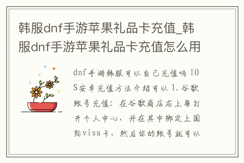 韓服dnf手游蘋果禮品卡充值_韓服dnf手游蘋果禮品卡充值怎么用