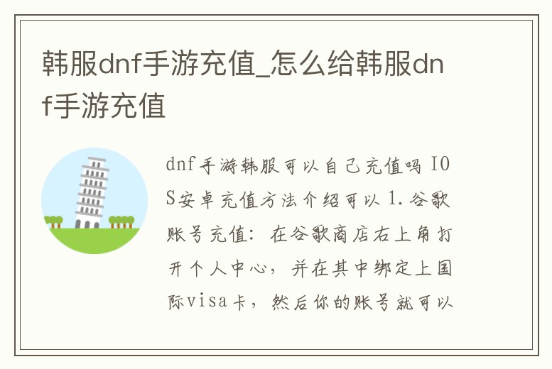 韓服dnf手游充值_怎么給韓服dnf手游充值