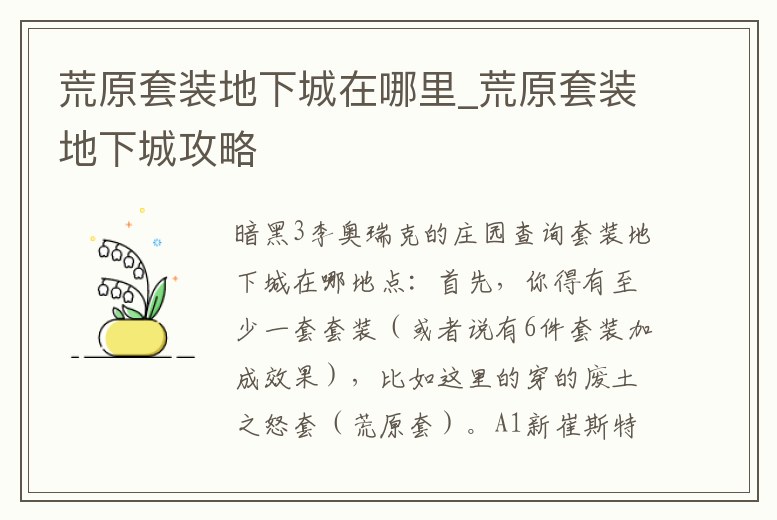 暗黑3李奧瑞克的莊園查詢套裝地下城在哪