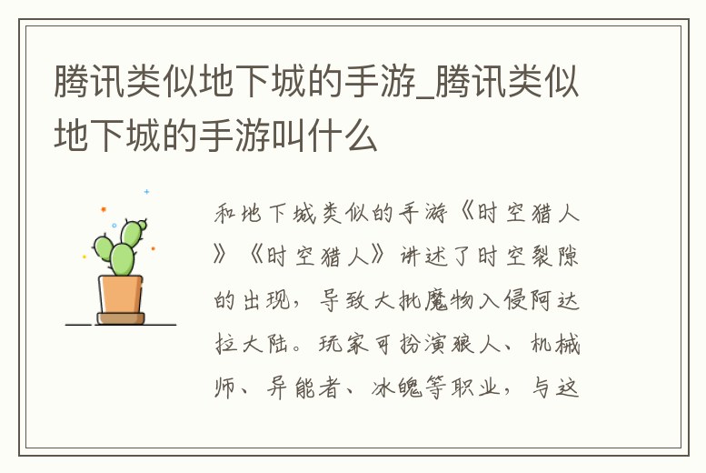騰訊類似地下城的手游_騰訊類似地下城的手游叫什么