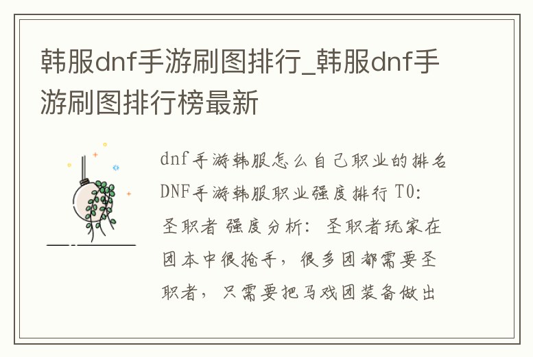 韓服dnf手游刷圖排行_韓服dnf手游刷圖排行榜最新