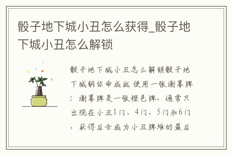 骰子地下城鑰你命成就 使用一張謝幕牌:謝幕牌是一張橙色牌,通常只出現在小丑1門、4門、5門和6門,獲得后會成為小丑牌堆的最后一張牌。只要你能用一次這類牌就能得到相應成就。對于小丑來說,只要你的卡組規劃得好。