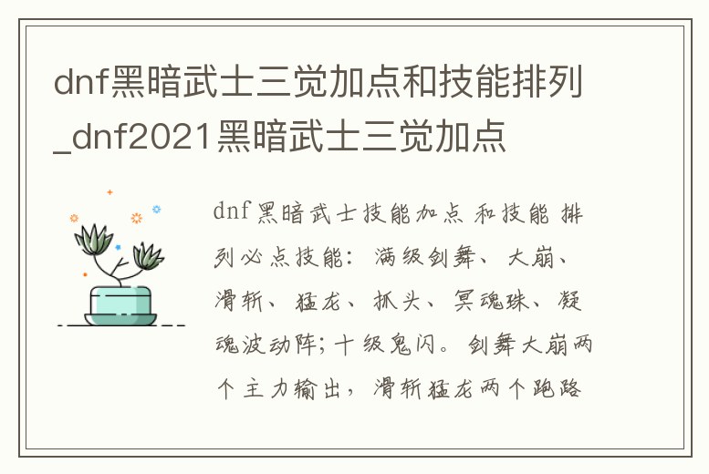 - dnf黑暗武士三覺(jué)加點(diǎn)和技能排列_dnf2021黑暗武士三覺(jué)加點(diǎn)