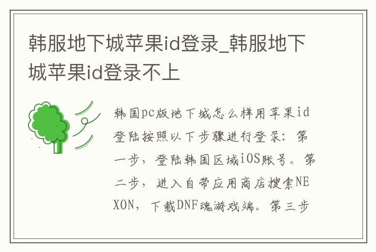 韓服地下城蘋果id登錄_韓服地下城蘋果id登錄不上