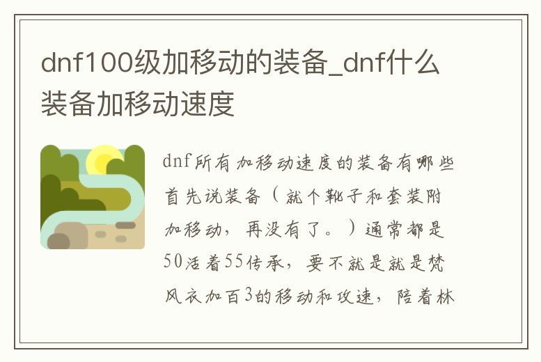 dnf100級加移動的裝備_dnf什么裝備加移動速度